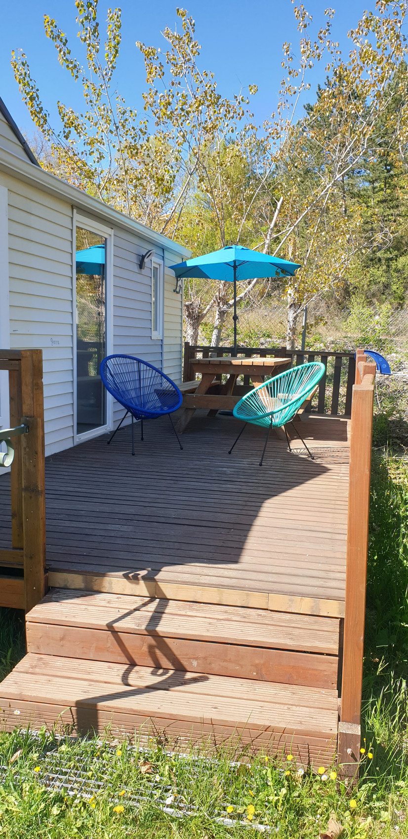 Constitué de 2 chambres, une pièce principale, terrasse avec table forestière, parasol et fauteuils. Egalement une salle de bain avec douche et wc séparé.